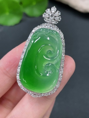 F29410889 Jadeite Ruyi Inlaid Pendant 18K Gold Total Weight Approx. 7.3g (With Diamond Accents)