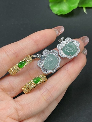F37373739 Jadeite Pendant + Ring Set Sell as a Lot Non-Gold