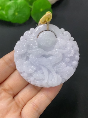 F27116567 Jadeite Pendant Birds Singing and Flowers Smelling