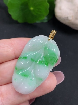 F36330257 Jadeite Leaf Pendant Total Weight Approx. 8.69g 18k Gold Clasp with Diamond Accents
