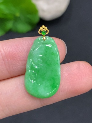 F37356368 Jadeite Ruyi Pendant with 18K Gold Clasp, Total Weight Approximately 1.6g