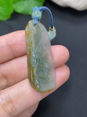 F34013029 Jadeite Guanyin Pendant, Total Weight Approx. 28.4g (Including String Weight) (Yellow Part Color Origin Undetermined)