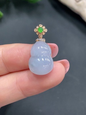 F20308545 Jadeite Gourd Pendant with 18K Gold Clasp, Total Weight 2.668g