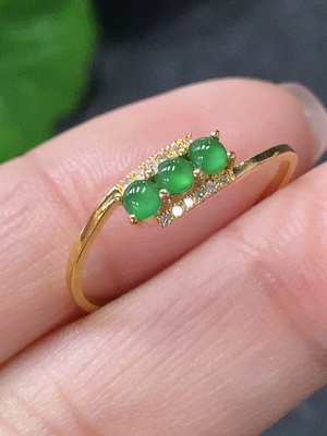 F34042624 Jadeite Inlaid Ring 18k with Diamond Accents Size 15 Total Weight Approximately 1.03g