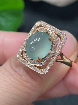 F37351547 Jadeite inlaid ring 18k with diamond size 6 total weight approximately 5.66g