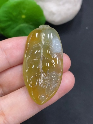F16750808 Jadeite Leaf Inlaid Pendant Non-Gold Inlaid