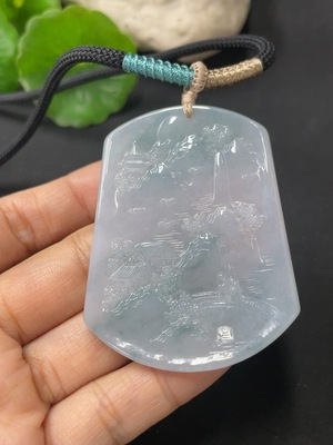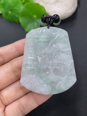 F36246393 Jadeite Pendant Landscape Plaque Total Weight Approximately 25.93g Including Rope