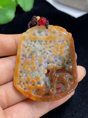 F38526420 Jadeite Pendant Deer Plate Total Weight Approx. 30.99g (Including Rope Weight) With Non-Grade A Stones