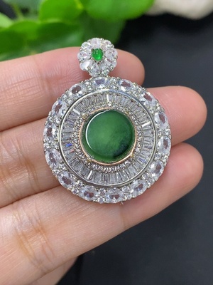 F38533411 Jadeite Inlaid Pendant Non-Gold Inlaid Total Weight Approx. 7.3g (Mounted Stones Non-Grade A)