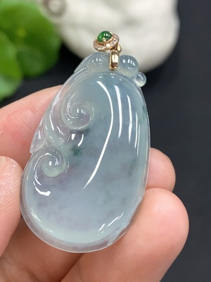 F32701987 Jadeite Ruyi Pendant with 18K Gold Bail Total Weight Approx. 6.7g (Diamond Accent)(Cracked)