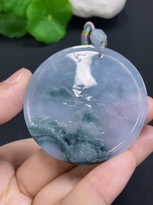 F26971967 Jadeite Landscape Pendant of Wisdom and Joy, total weight including string approx. 30.6g (with collection certificate)