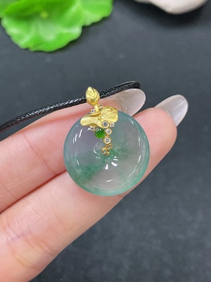 F35139069 Jadeite Pendant Peace Buckle with 18k Clasp and Cord, Total Weight Approx. 7.26g