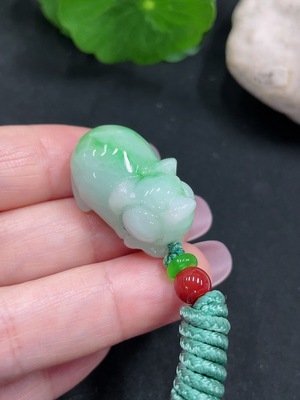 F36330035 Jadeite Pig Pendant Total Weight Approx. 14.2g Including Rope Weight With Non-A Grade Beads