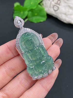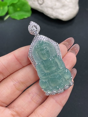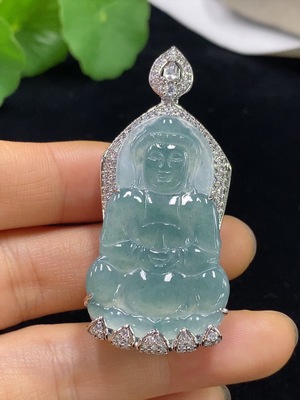 F37362967 Jadeite Guanyin Inlaid Pendant Non-Gold Total Weight About 19.88g