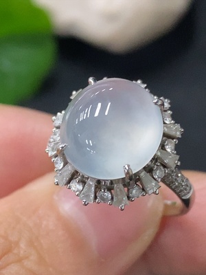 F35143042 Jadeite cabochon ring, non-gold setting, adjustable
