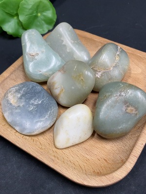 H36214446 Xiuyan Celestial Blue Frost (Serpentine Jade) Regular Round Bracelet