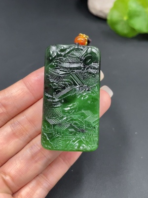 H20198805 Hetian Jade Pendant - Landscape Plaque, Total Weight Approx. (Including Rope) 44.1g