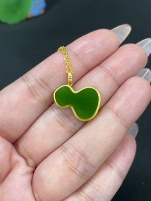 H38531003 Hetian Jade Jasper Inlaid Pendant Gourd Chain Non-Gold Pendant 18k Gold Non-Diamond Total Weight Approx. (Including Chain) 2.2g
