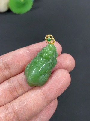 H37458318 Hetian Jade Inlaid Pendant Auspicious Beast Total Weight Approx.10.2g 18k