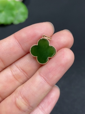H36311260 Hetian Jade Jasper Inlaid Four-Leaf Clover 18K Gold Total Weight Approx. 1.5g