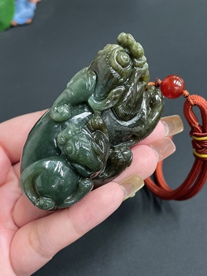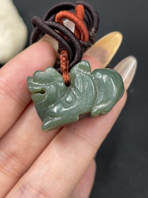H20280027 Hetian Jade Handheld Piece Pixiu with Rope Weight 132.48g