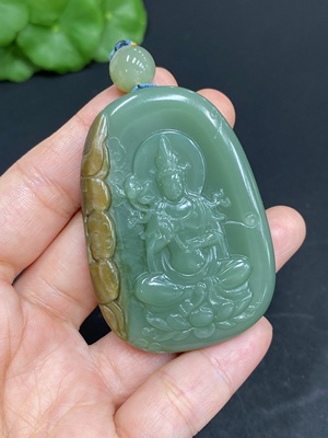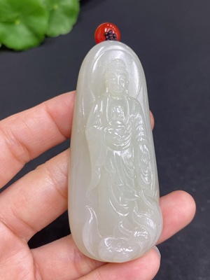 H34970224 Hetian Jade Pendant - Green Jade Guanyin