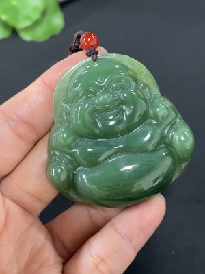 H37410885 Hetian Jade Jasper Pendant Buddha, Total Weight (Including Rope) Approx. 47.4g