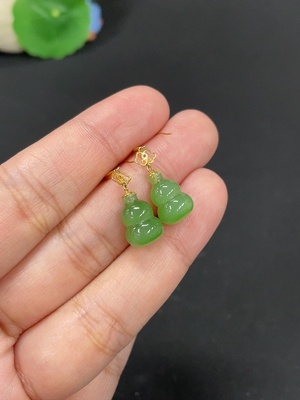 H37458402 Hetian Jade Inlaid Earrings Gourd Total Weight About 2.9g No Stamp 18k Gold Content