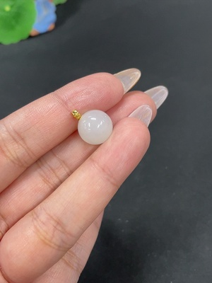 H38531153 Hetian Jade Beaded Pendant with Inlay, Approx. 11.7mm, 18K Gold, Total Weight Approx. 2.6g