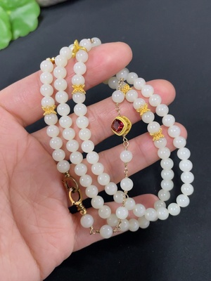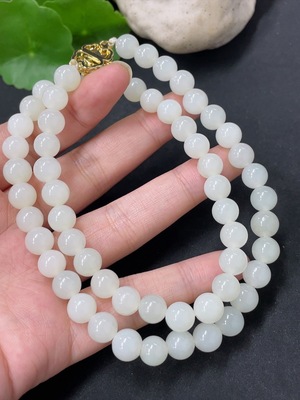 H37437675 Hetian Jade Bead Necklace, Approx. 6mm, Total Weight About 30.8g