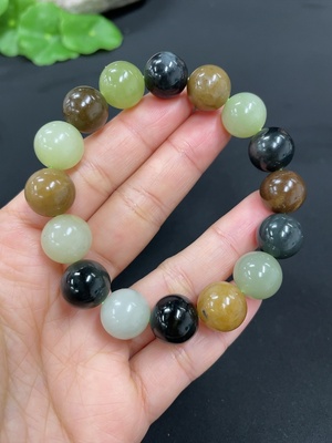 H37458372 Hetian Jade Bracelet, approx. 9.9mm, total weight approx. 28.6g, non-Hetian Jade beads