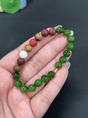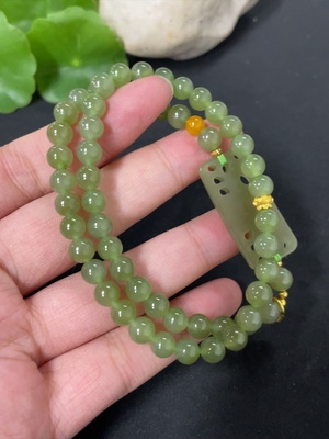 H38530005 Hetian Jade Biy Bracelet, approx. 7.5mm, no imprint, gold content 75%, total weight approx. 12.7g, accessory beads not Hetian Jade