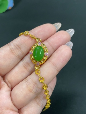 H38529777 Hetian Jade Jasper Cabochon Inlaid Bracelet, 18k Gold, Total Weight Approx. 5.3g
