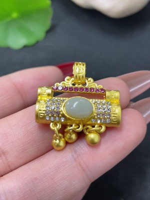 H38522245 Hetian Jade Inlaid Pendant Non-Gold Total Weight Approx. 8.6g Cabochon Drop