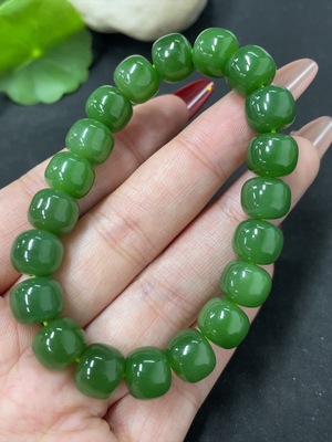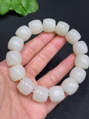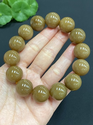 H37461387 Hetian Jade Jasper Bracelet, approx. 12.5mm beads, total weight approx. 57.1g