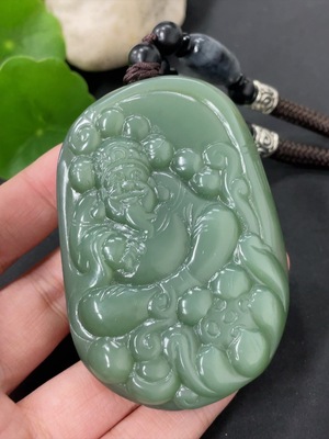 H37461168 Hetian Jade Jasper Pendant - God of Wealth with Non-Hetian Jade Beads, Total Weight (Including Cord): 95.8g