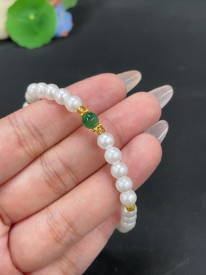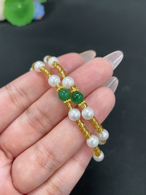 H38539846 African Emerald (Dulong Jade) (Green Only) Bead Bracelet with Non-Dulong Jade Beads Non-Gold Total Weight Approx. 5.5g