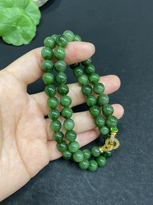 H33879701 Hetian Jade Bead Necklace Approx. 7.6mm Non-gold-inlaid Total Weight About 39.9g