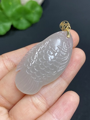 H28261310 Hetian Jade Pendant Fish with 18K Gold Clasp Total Weight Approx. 10.7g