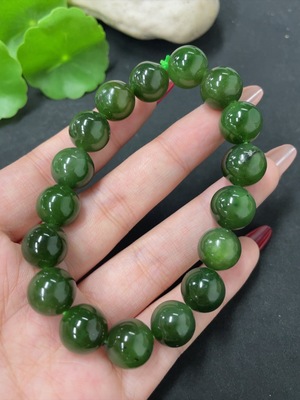 H38521417 Hetian Jade Jasper Bracelet, approx. 12mm beads, total weight approx. 45.8g