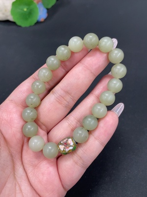 H34011942 Hetian Jade Bracelet Approx. 11.6mm Beads Total Weight About 75.2g With Non-Hetian Jade Accents