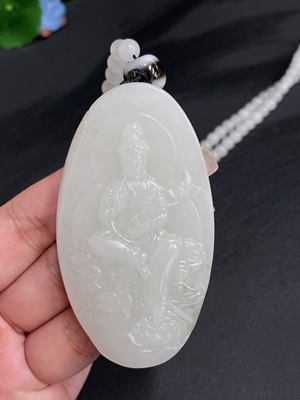 H22470401 Hetian Jade Pendant Guanyin with Chain Total Weight 111.01g Undetermined Skin Color Origin Top Bead Non-Hetian