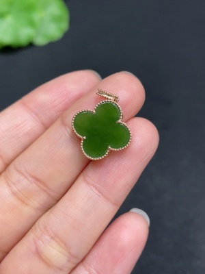 H36311259 Hetian Jade Inlaid Four-Leaf Clover 18k Gold Total Weight Approx. 1.5g