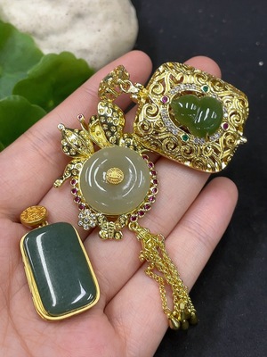 H36226079 Hetian Jade Inlaid Pendant Non-Gold Total Weight Approx. 33.4g