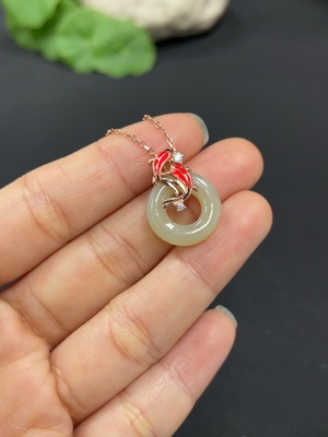 H28261310 Hetian Jade Pendant Fish with 18K Gold Clasp Total Weight Approx. 10.7g