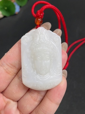 H34037850 Hetian Jade Pendant Guanyin Approx. Gross Weight (with rope) 50.2g