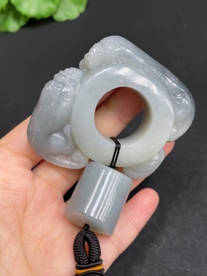 H36342891 Hetian Jade Handheld Ornament - Auspicious Beast Ring