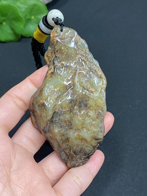 H29422599 Hetian Jade Handheld Piece - Abundance Every Year - Undetermined Skin Color Origin - Contains Other Mineral Components - Total Weight (Including Rope) Approximately 95.7g