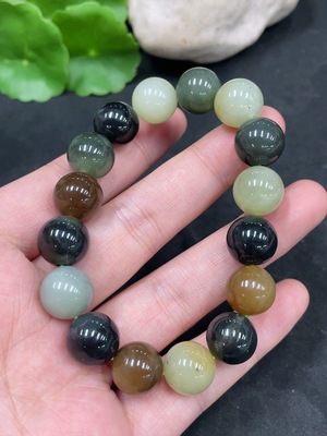 H33931861 Hetian Jade Bracelet Approx. 11.7mm Beads Total Weight About 46.1g Containing Other Mineral Components