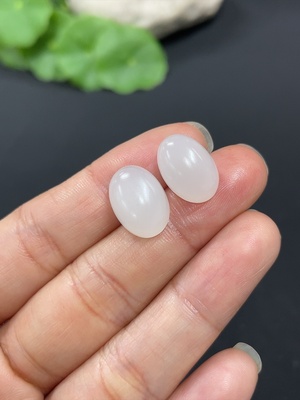 H39545224 Hetian Jade Cabochon Earrings with 18K Gold, Total Weight Approx. 2.3g